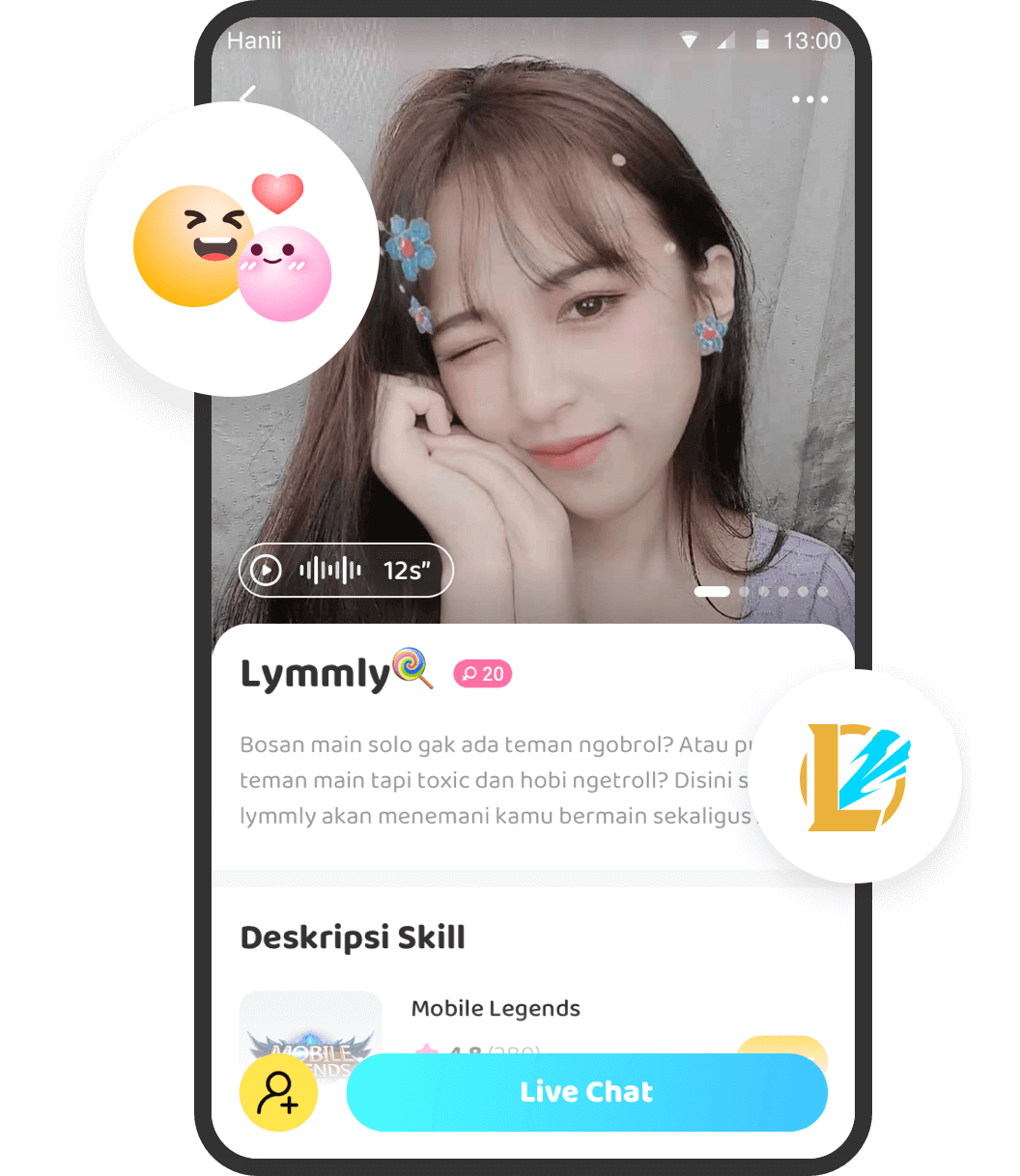 HALO! lymmly bisa menjadi teman mabar kamu sekaligus teman ngobrol yang asik dan pastinya tidak membosankan. Dengan posisi sebagai Mid support dan Offlaner siap menemani kamu bermain game MLBB